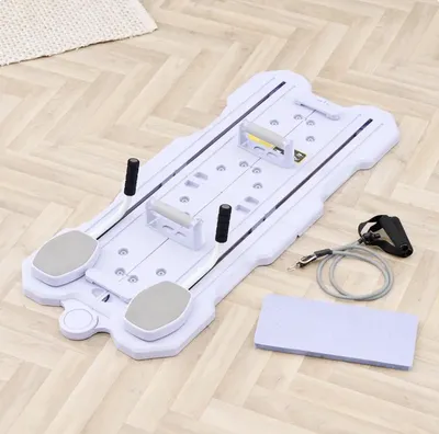 Je traint met verschillende weerstandsniveaus en krijgt er push-up handgrepen bij voor extra variatie in je workout. Echt alles wat je nodig hebt zit erbij, van elastische banden tot kniekussens. Online, op platforms als YouTube en Instagram, zijn talloze instructievideo's te vinden om je op weg te helpen. Het is opvouwbaar en dus makkelijk op te bergen, ideaal voor wie niet veel ruimte heeft.