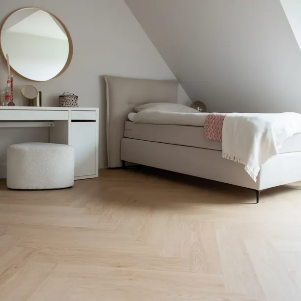 Sommige systemen gebruik je met lijm. Andere klik je zwevend in elkaar. Die keuze speelt een rol voor de luchtkwaliteit in huis.