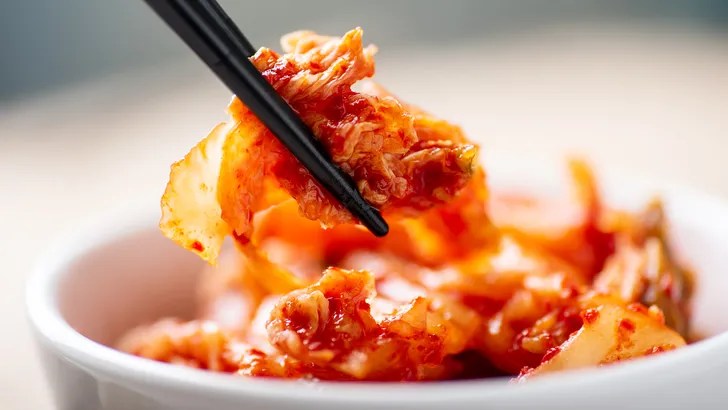 Kimchi is een traditioneel Koreaans gerecht dat meestal wordt gemaakt van gefermenteerde Chinese kool, radijs, knoflook, gember en chilipeper. Tijdens het fermentatieproces zetten melkzuurbacteriën natuurlijke suikers uit de groente om in melkzuur. Dat zorgt niet alleen voor de kenmerkende zure smaak, maar ook voor de aanwezigheid van levende bacteriën – mits het product niet is gepasteuriseerd.