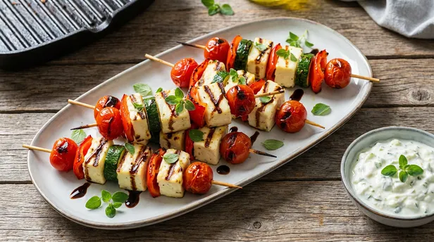 3. De zomerse borrelhap: Kleurrijke halloumi-groentespiesjes van de grill