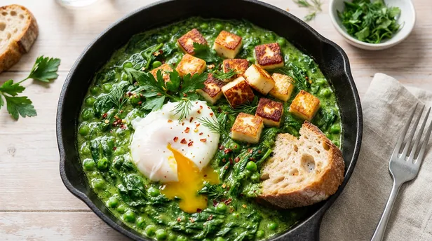 1. De verrassende weekendbrunch: Groene shakshuka met krokante halloumi